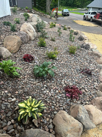 Rock is durable, low maintenance, and holds up well in Wisconsin’s climate. It works especially well around foundations, trees, shrubs, and areas where mulch breaks down too quickly or requires frequent replacement.
